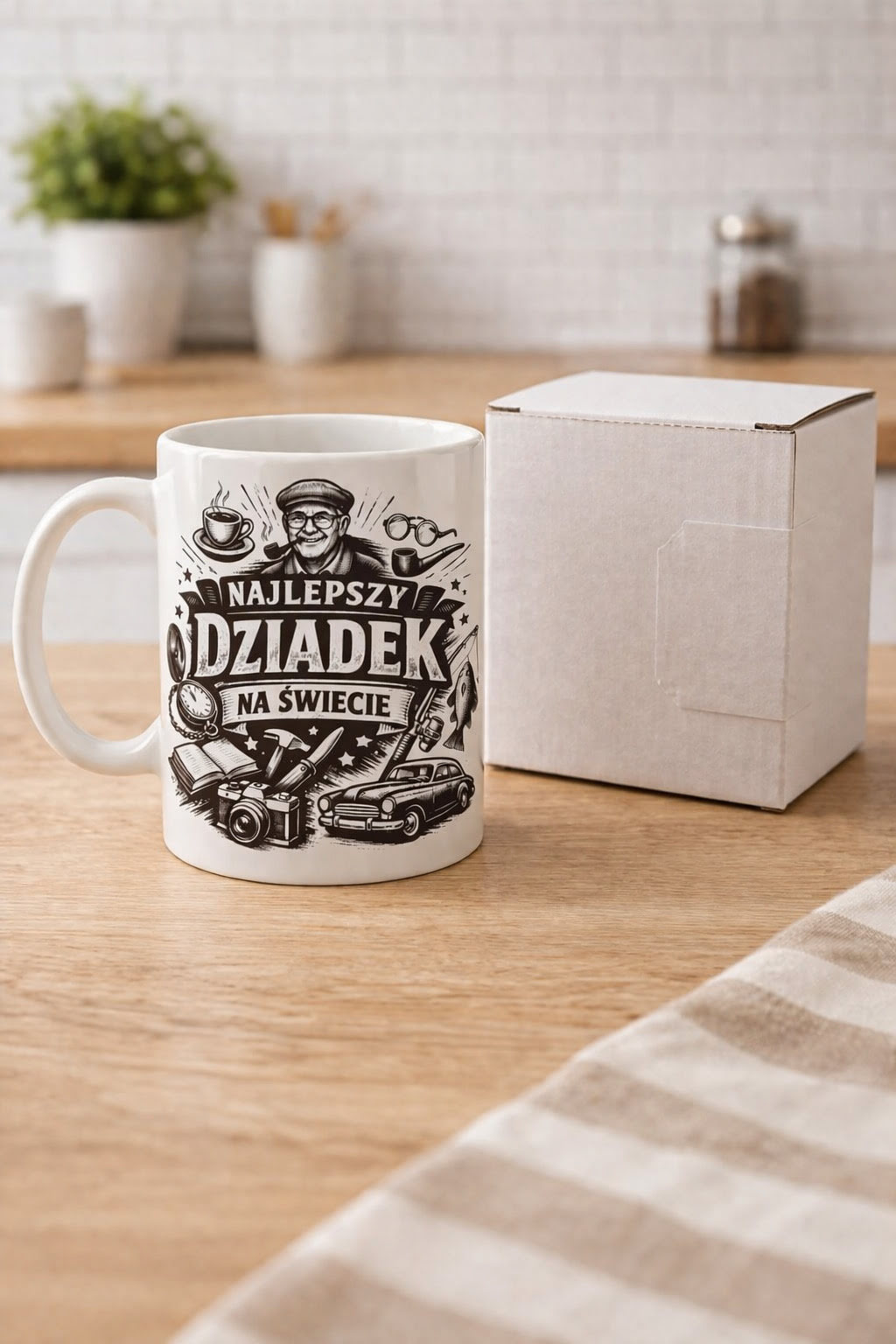 Idealny kubek dla dziadka, stylowy czarny nadruk. wspaniały prezent dla NAJLEPSZEGO DZIADKA NA ŚWIECIE